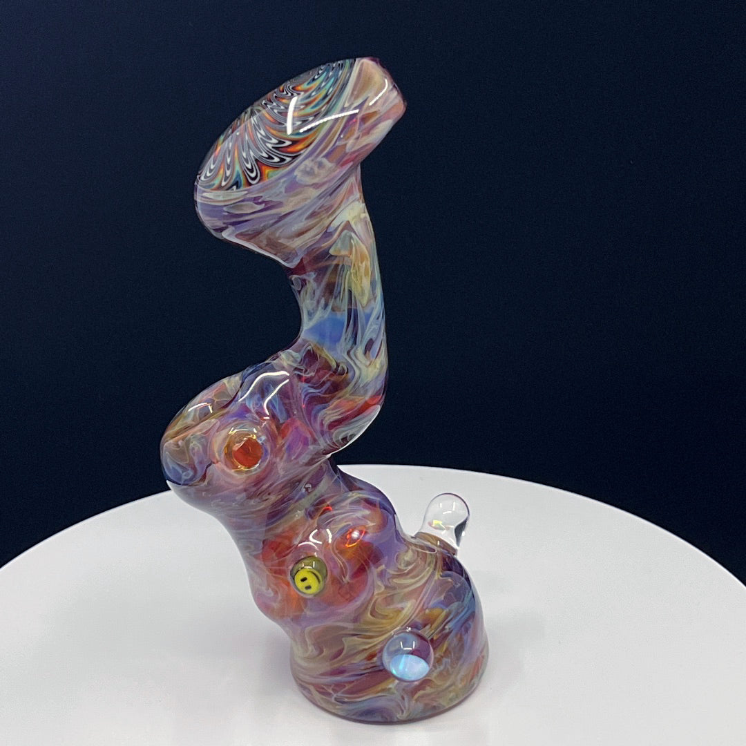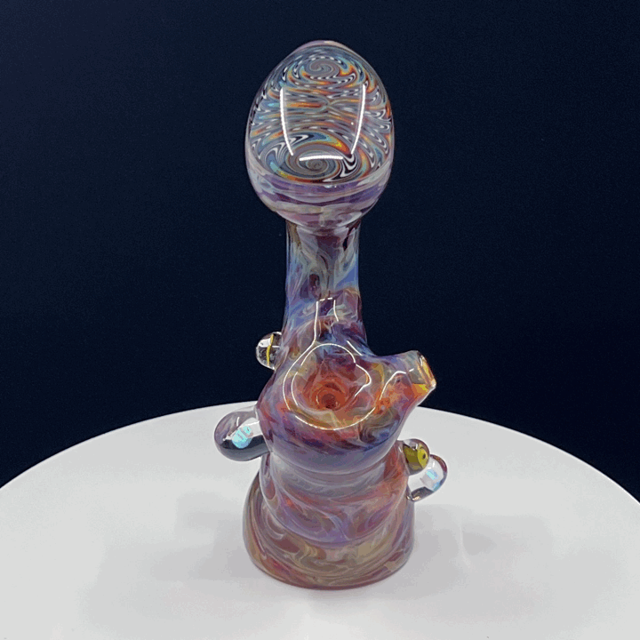 6 3/4" tall Amber purple bubbler w/ opals and mille in marbles by DuaneRayGlass.