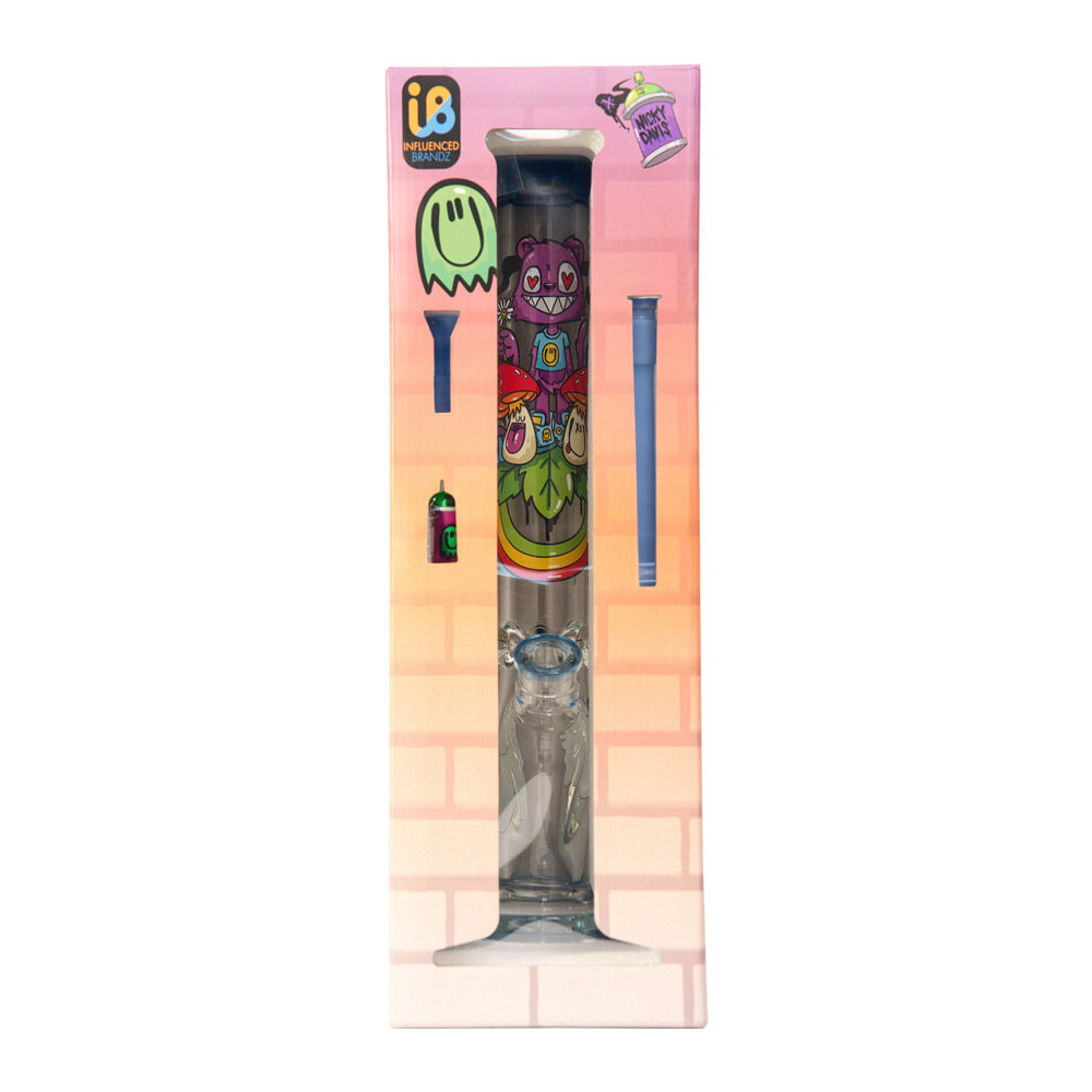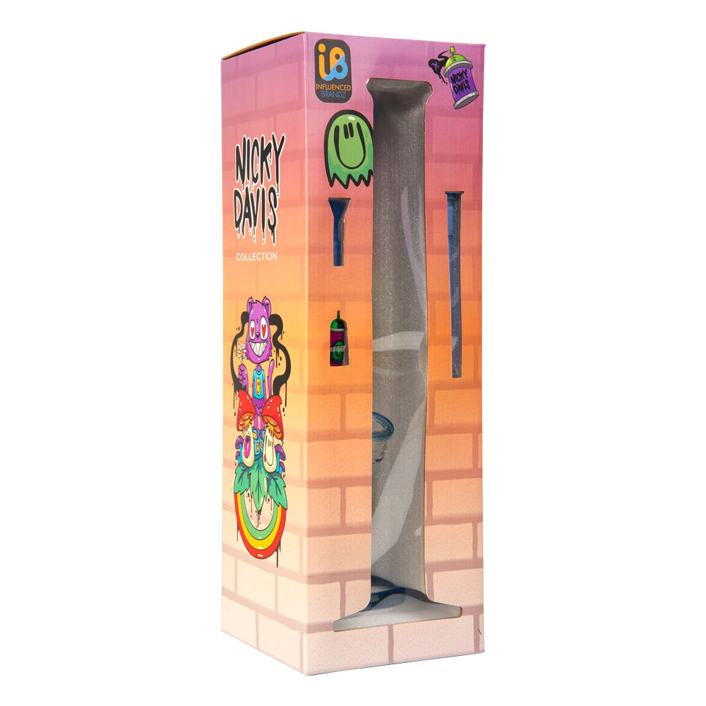 Our Straight Pipe Glass comes in a sturdy box. Both box and glass feature Nicky Davis’ iconic Ghost Gang artwork.