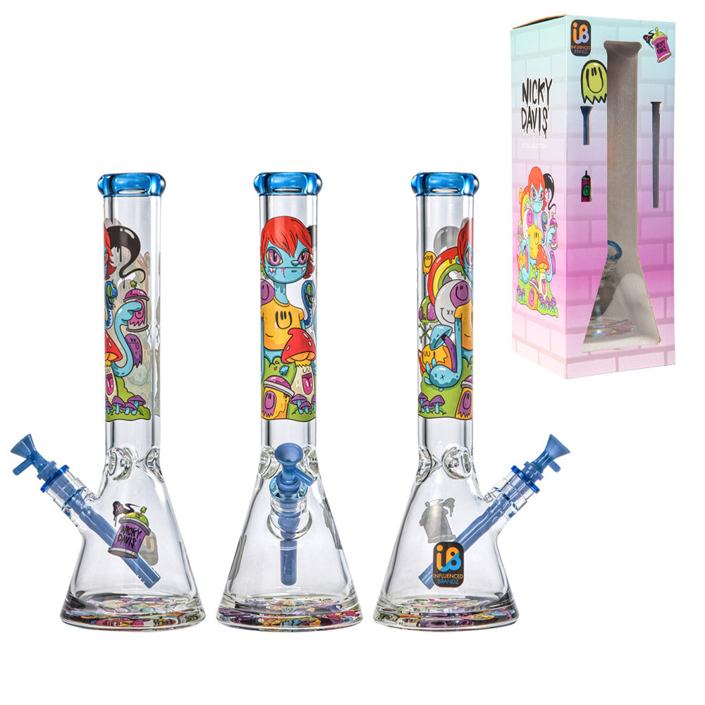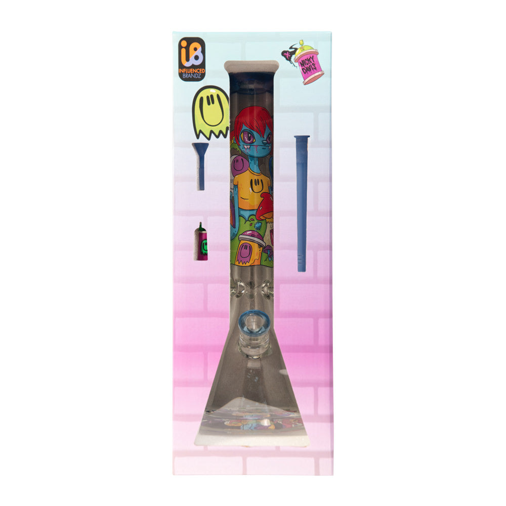Our Beaker Glass comes in a sturdy box. Both box and glass feature Nicky Davis’ iconic Ghost Gang artwork.