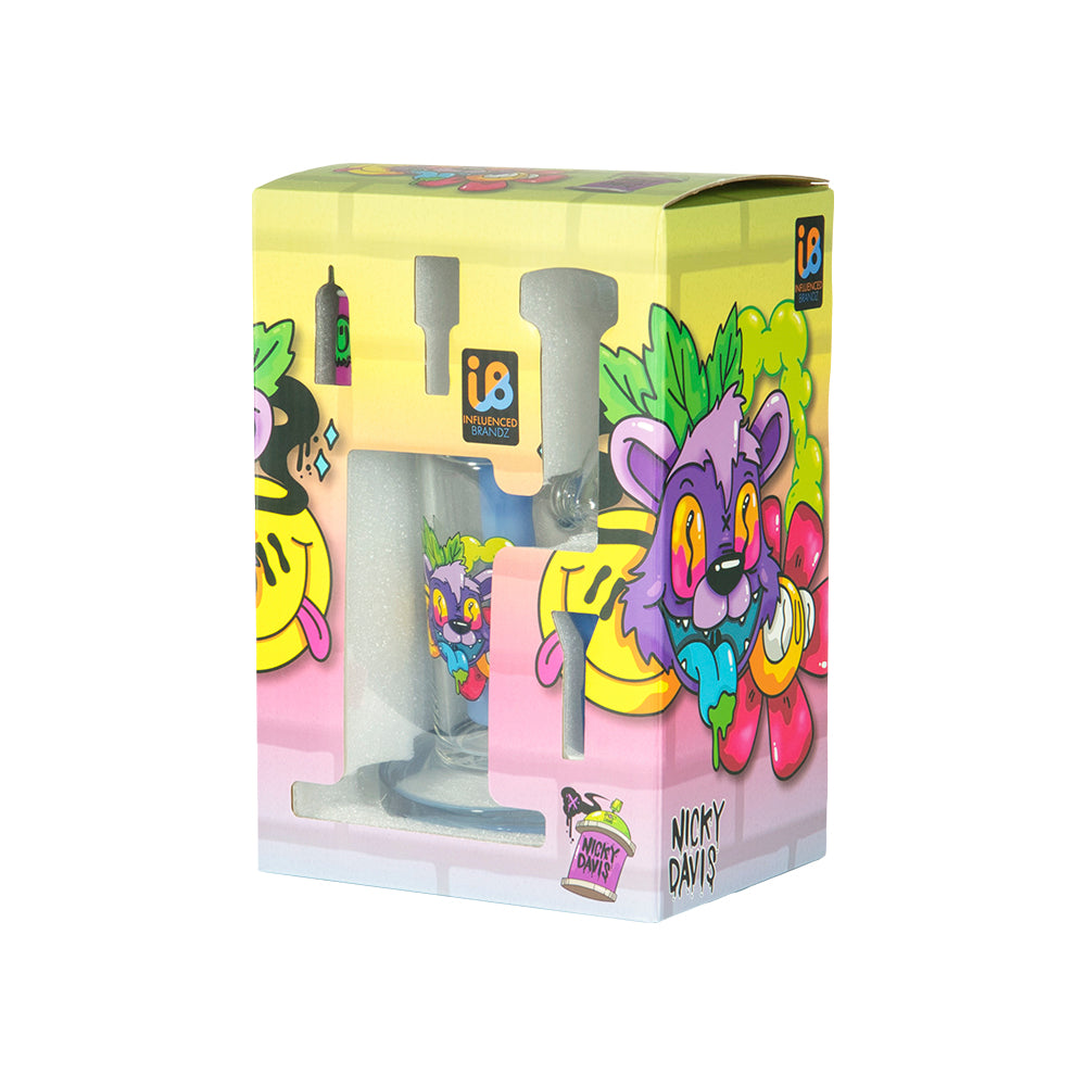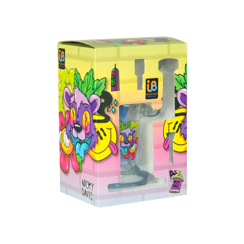 Introducing the Side Car Rig by Nicky Davis. Finding his inspiration from Saturday morning cartoons, graffiti-covered walls, and long hikes deep in the woods shows in this latest piece. This intricate piece of art comes with two separate 14mm bowls designed for dual use.