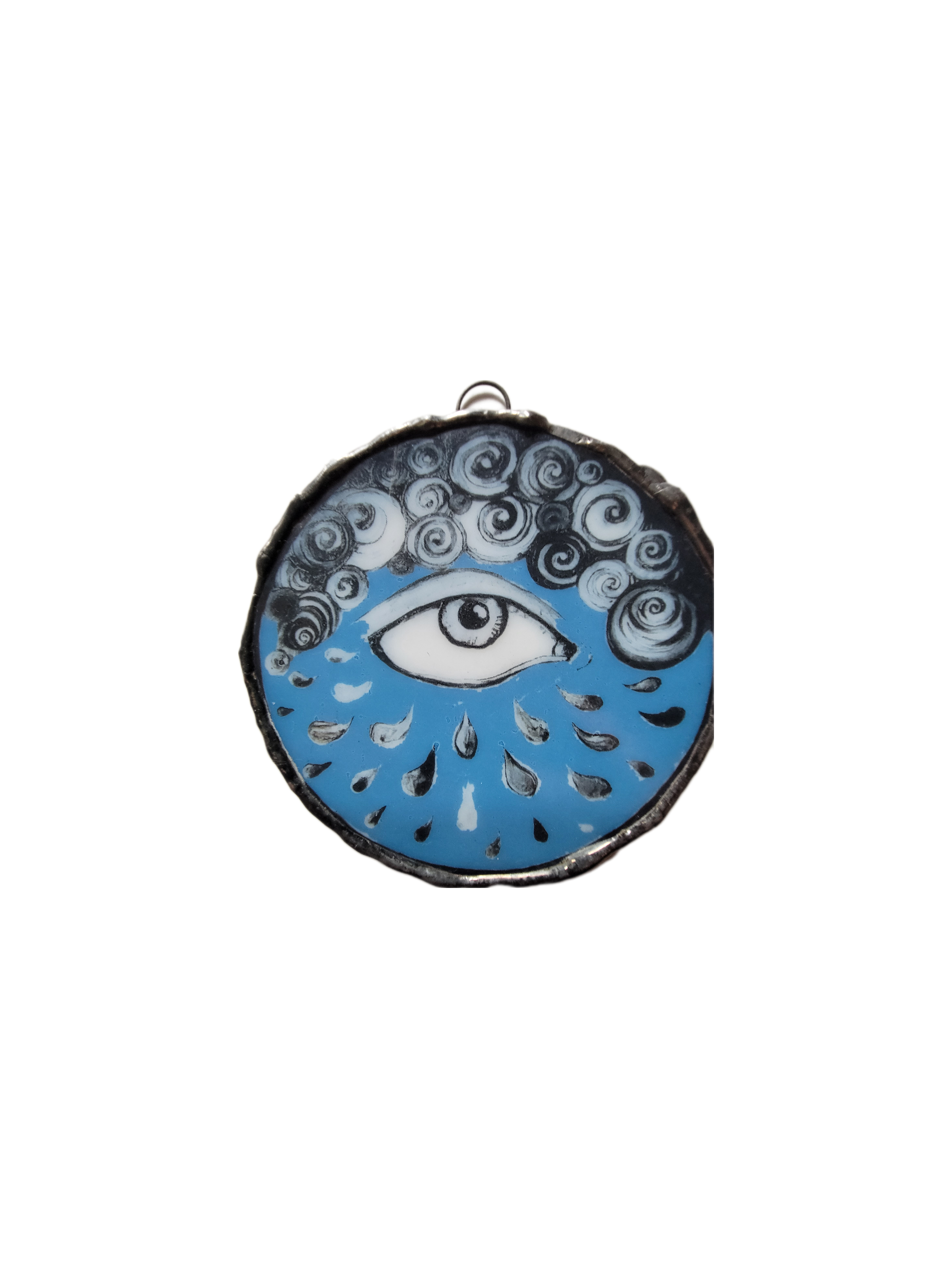 Illustrated Amulets to invoke certain energies into the owners home. 3.5 inches, original illustration hand enameled onto translucent milk glass and kiln fired.